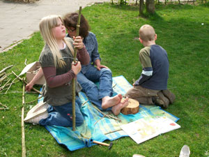 Dort angekommen halfen viele Kinder mit das Insektenhotel wieder zu bestücken. |