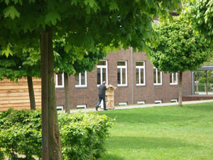 | Bevor wir unser Insektenhotel am 05.05.2010 in den Bauerngarten umziehen lassen konnten, musste noch so Manches erledigt werden. Die letzten Stöcke wurden gekürzt, eine Mandarinenkiste mit Ton befüllt und mit unterschiedlich großen Löchern versehen. Des Weiteren haben wir kleine Bienen aus Sperrholz zurechtgesägt und angemalt. Diese wurden zur Verzierung an das Bienen- und Insektenhotel angebracht. |